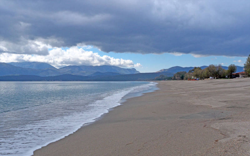 μια μεγάλη παραλία με μήκος περίπου 1500μ. και πλάτος 10μ. Ο προσανατολισμός της είναι ανατολικός και είναι προστατευμένη από τους ανέμους εκτός των βορειοανατολικών. Ισχυρά ρεύματα δεν υπάρχουν στην περιοχή.